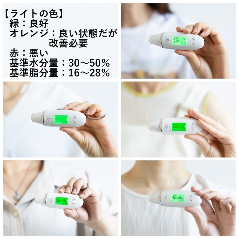 肌の水分量やハリ、肌年齢を測定できる